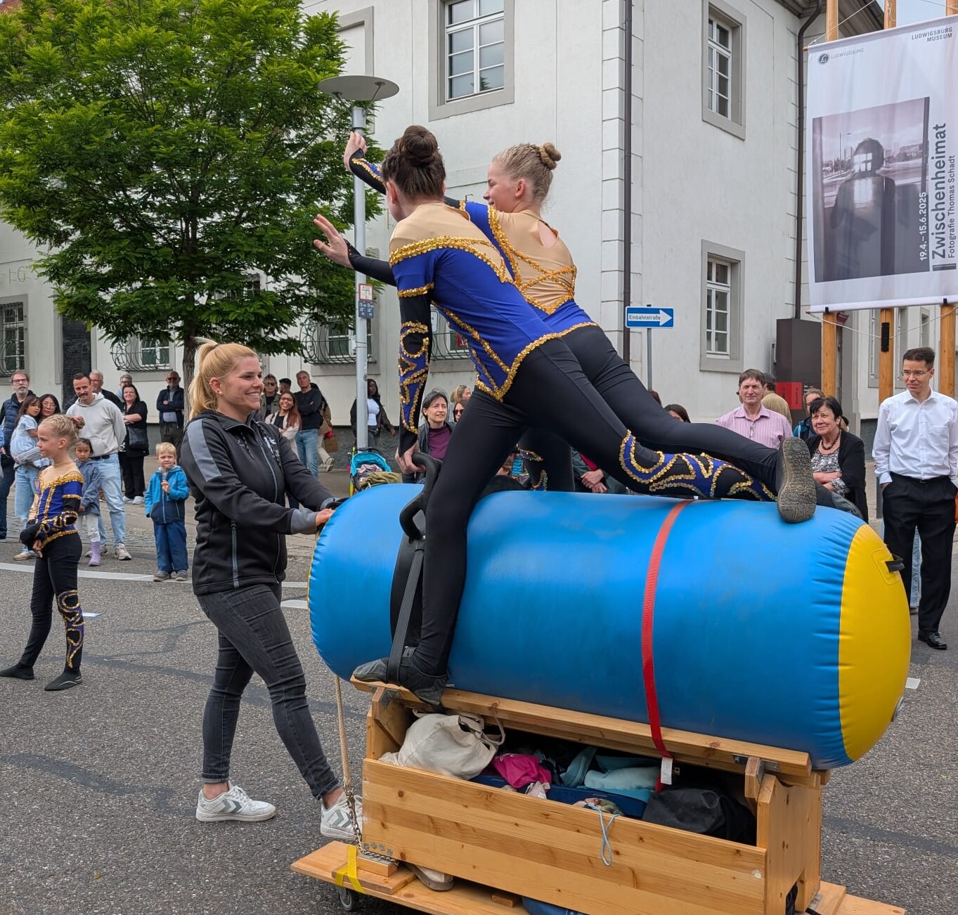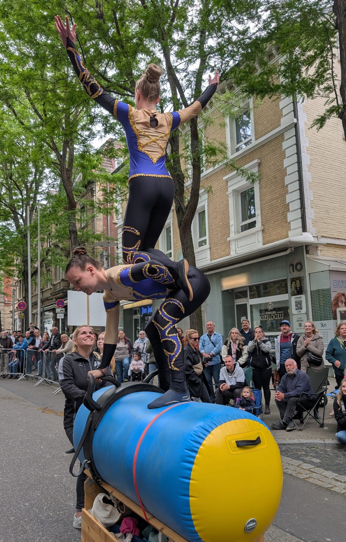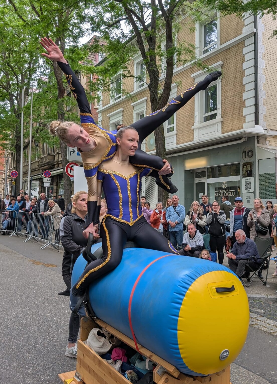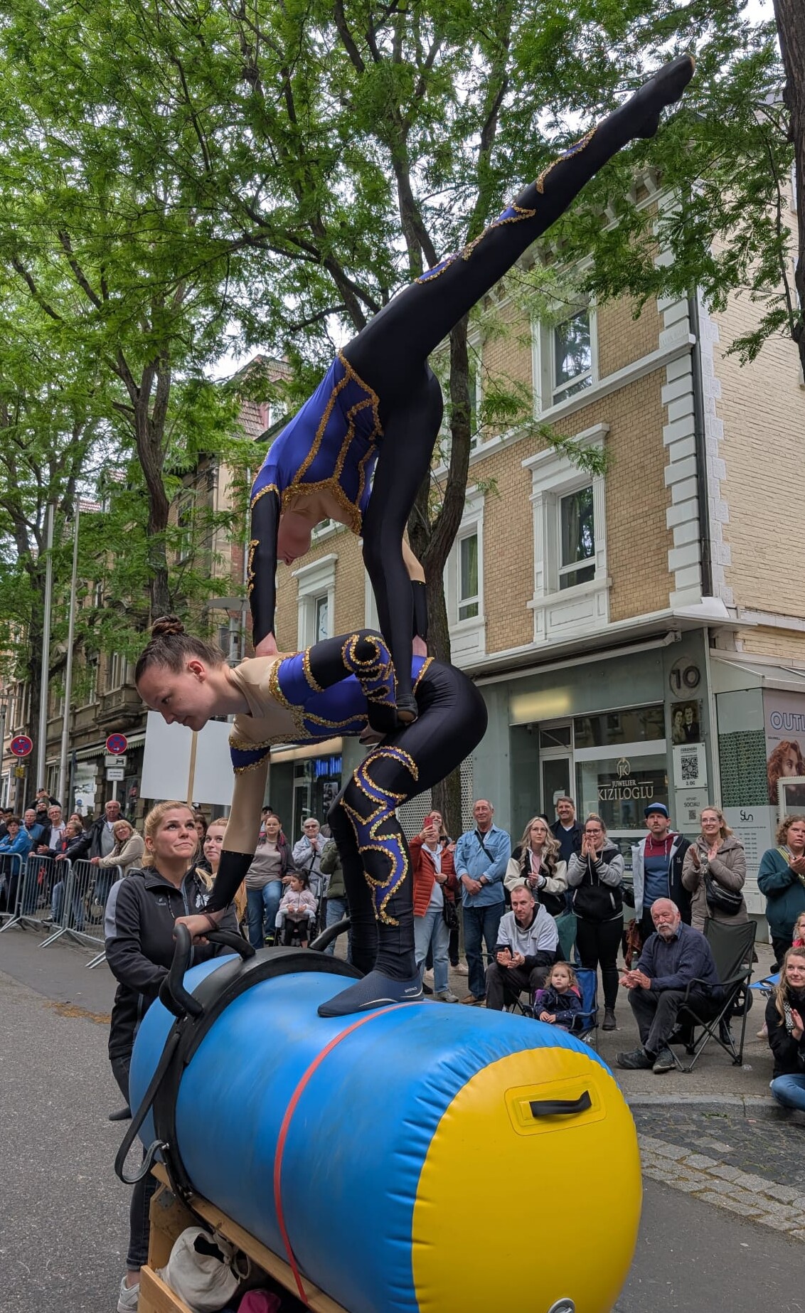 Unsere Voltigiermannschaft zeigte sich im Umzug voller Energie und Teamgeist in ihren Volti-Outfits. Auf „Rudi“, unserem Airhorse, führten sie tolle Übungen & Hebefiguren vor und begeisterten das Publikum entlang der Umzugsstrecke – der Applaus war ihnen sicher!