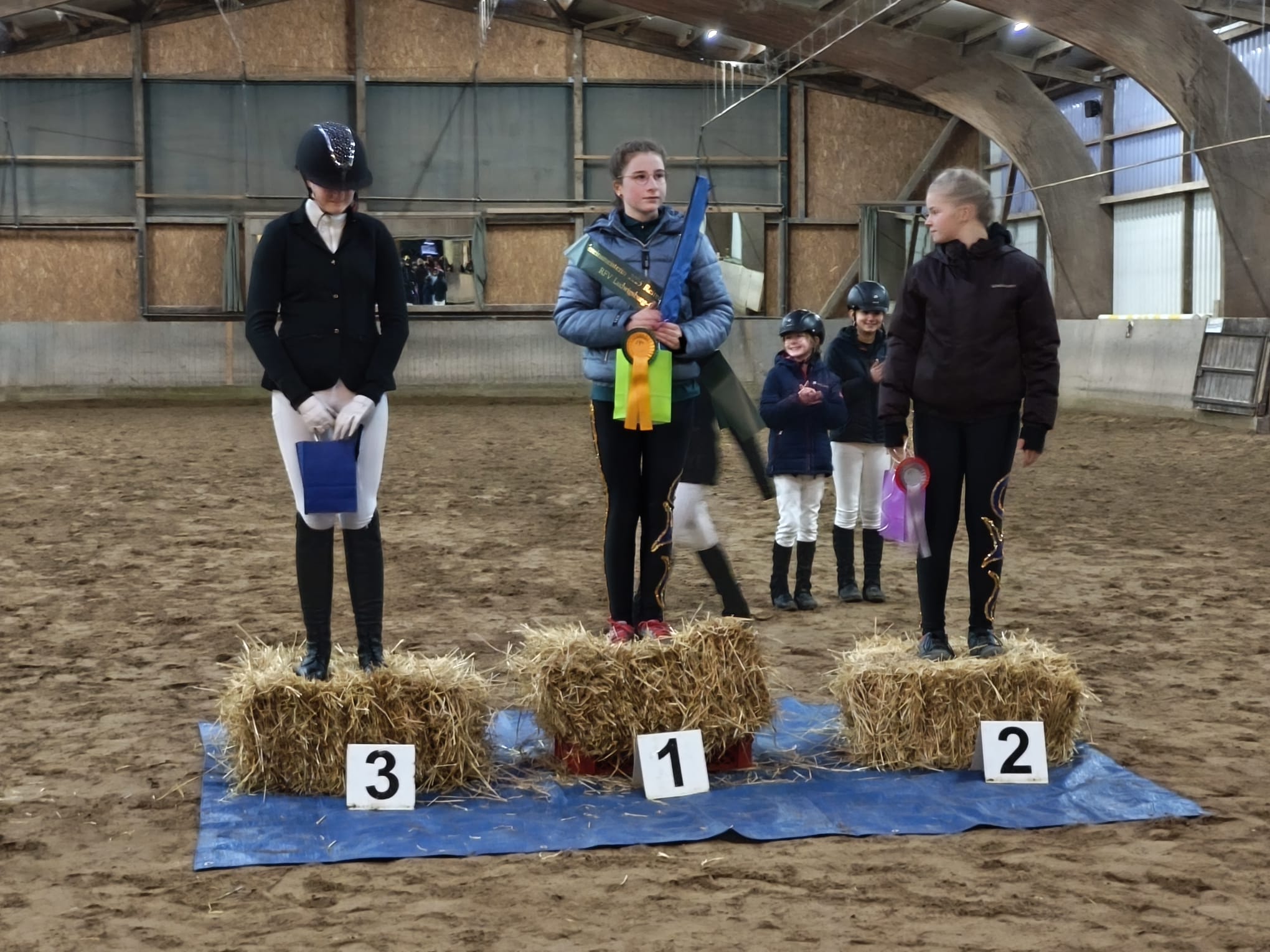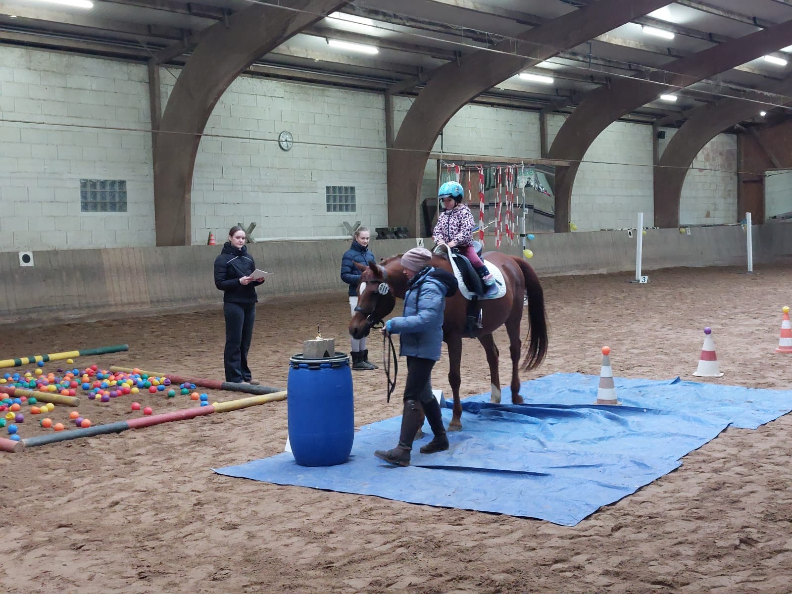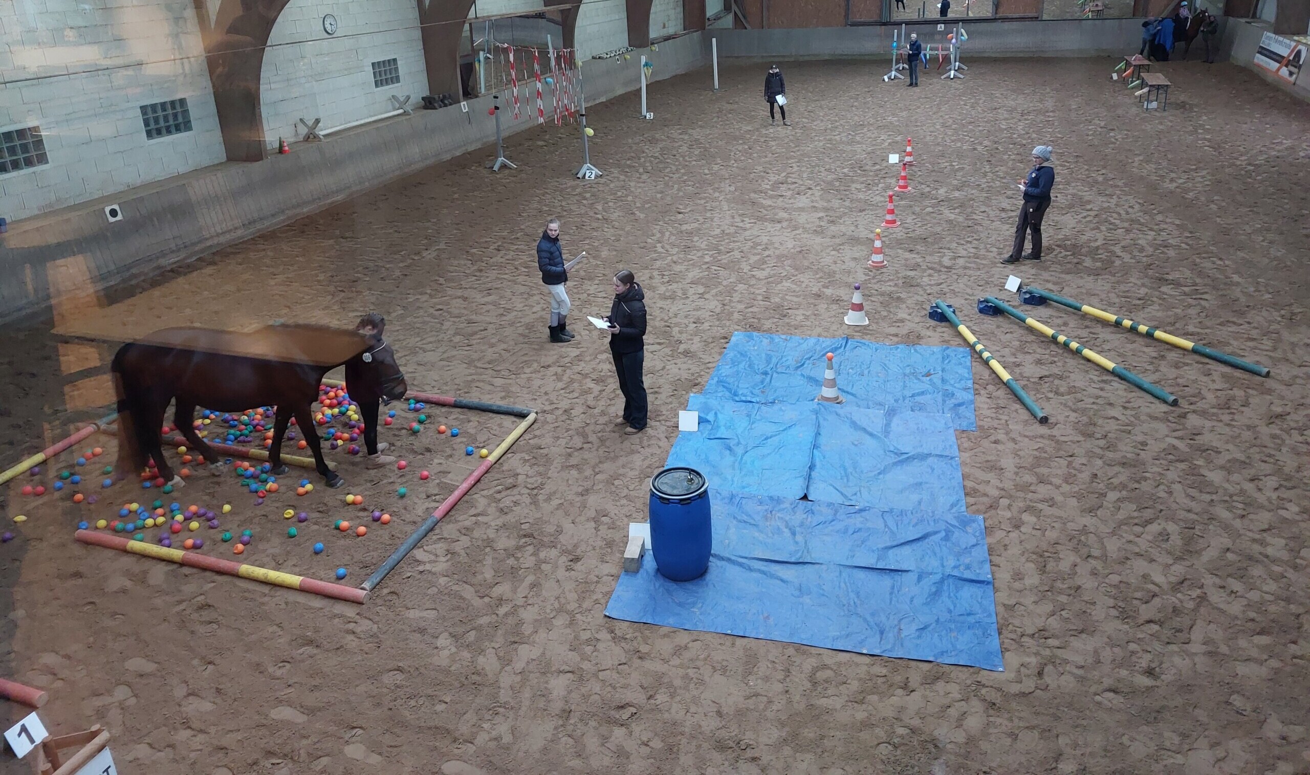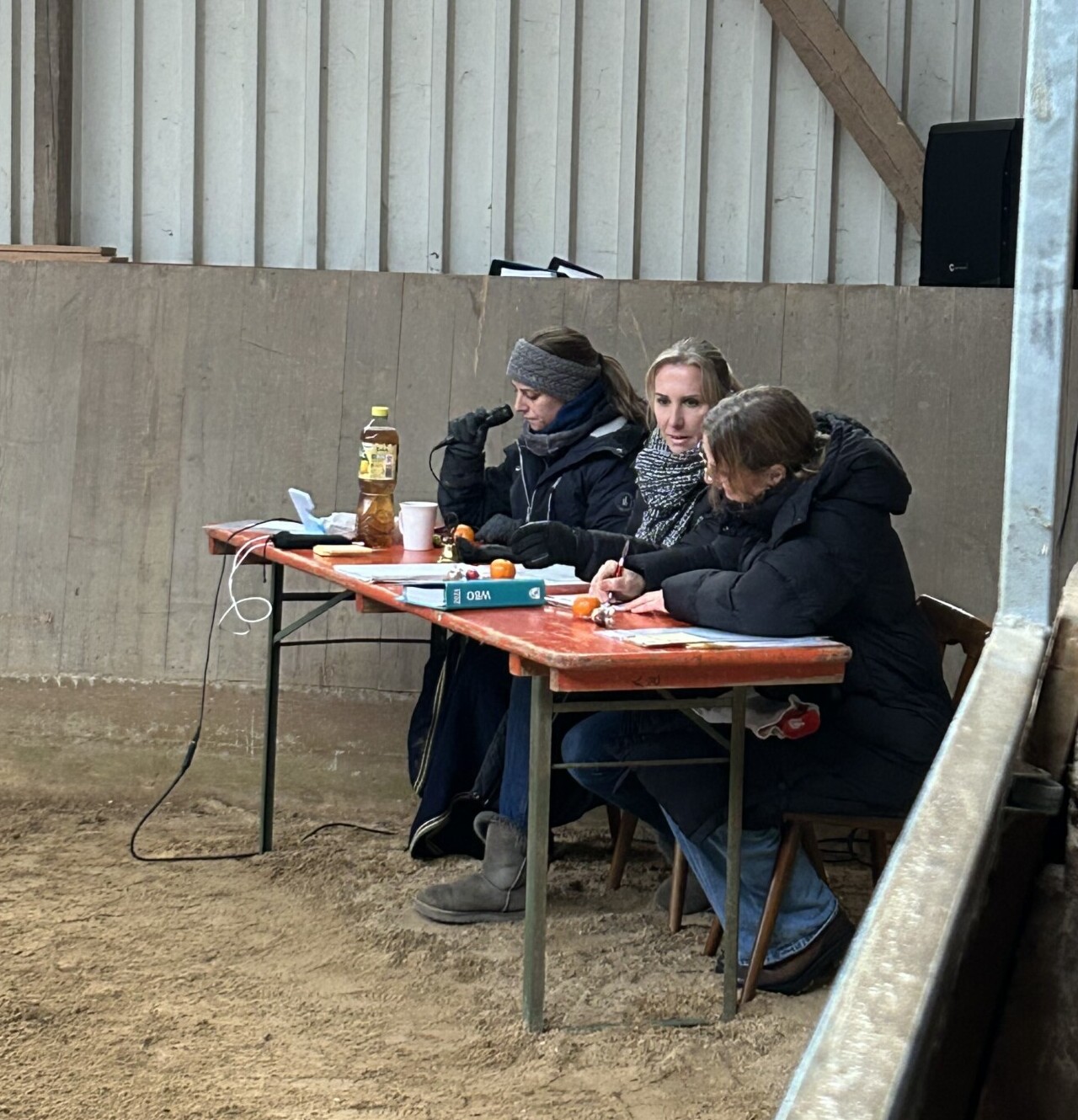 Zwar war es kalt, doch der Außenplatz war glücklicherweise nicht gefroren, sodass das Abreiten problemlos draußen stattfinden konnte. Die Prüfungen selbst wurden in der Halle ausgetragen. Bereits eine Woche zuvor hatten zahlreiche fleißige Helferinnen und Helfer bei einem Arbeitseinsatz dafür gesorgt, dass Halle, Sprünge und Stüble noch einmal gründlich gereinigt und vorbereitet wurden. Ein herzliches Dankeschön an alle, die hier tatkräftig unterstützt haben!