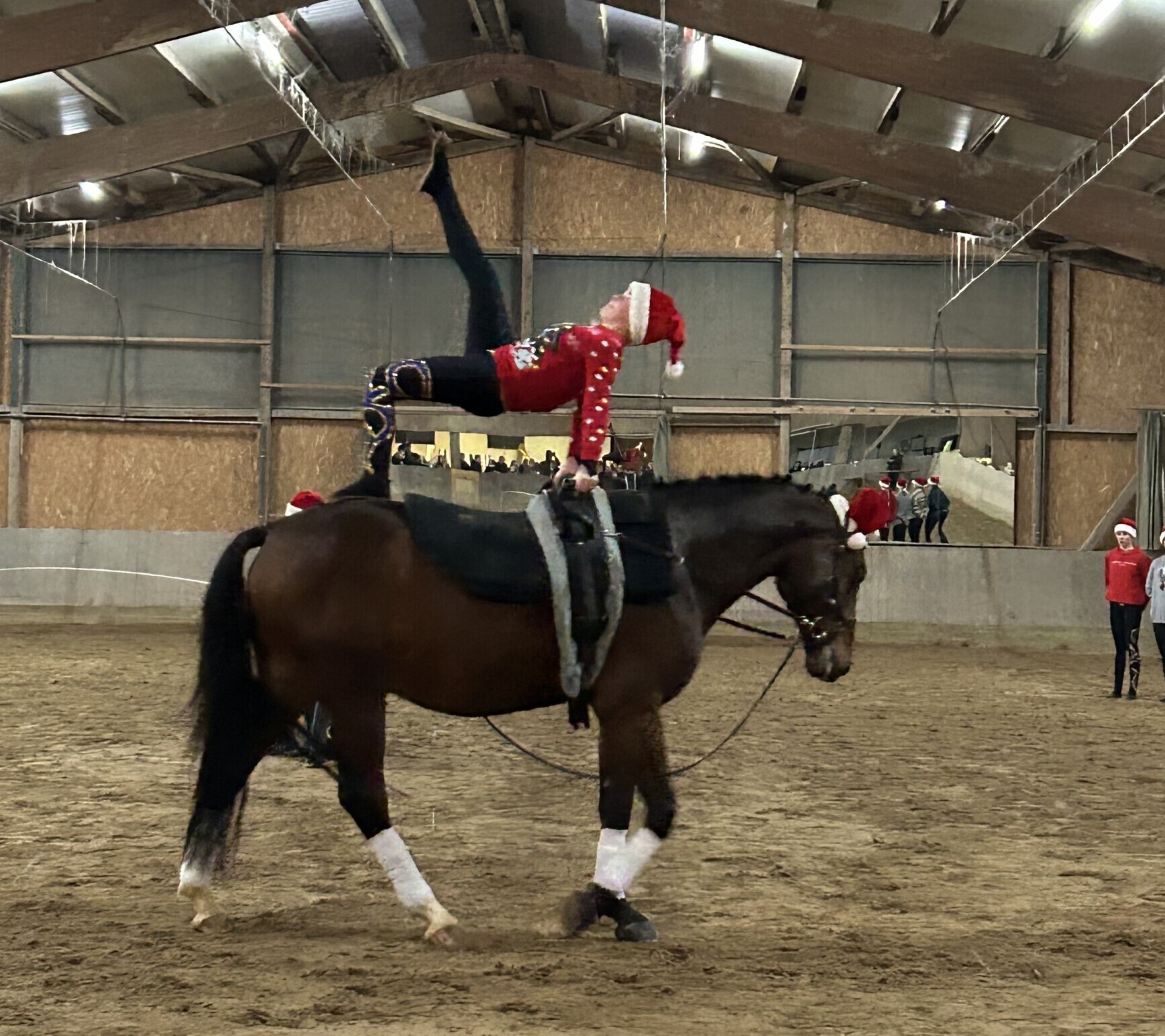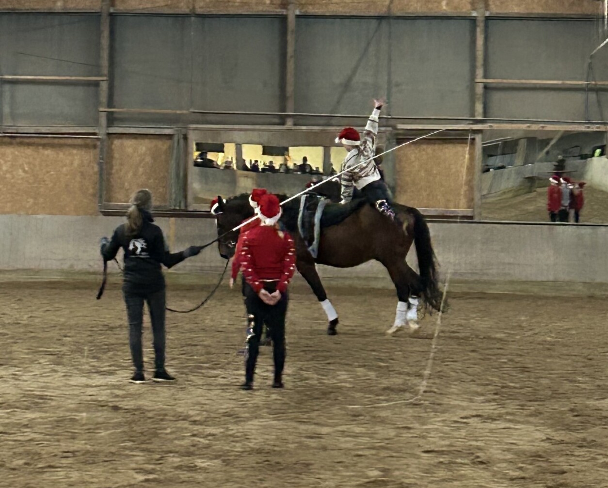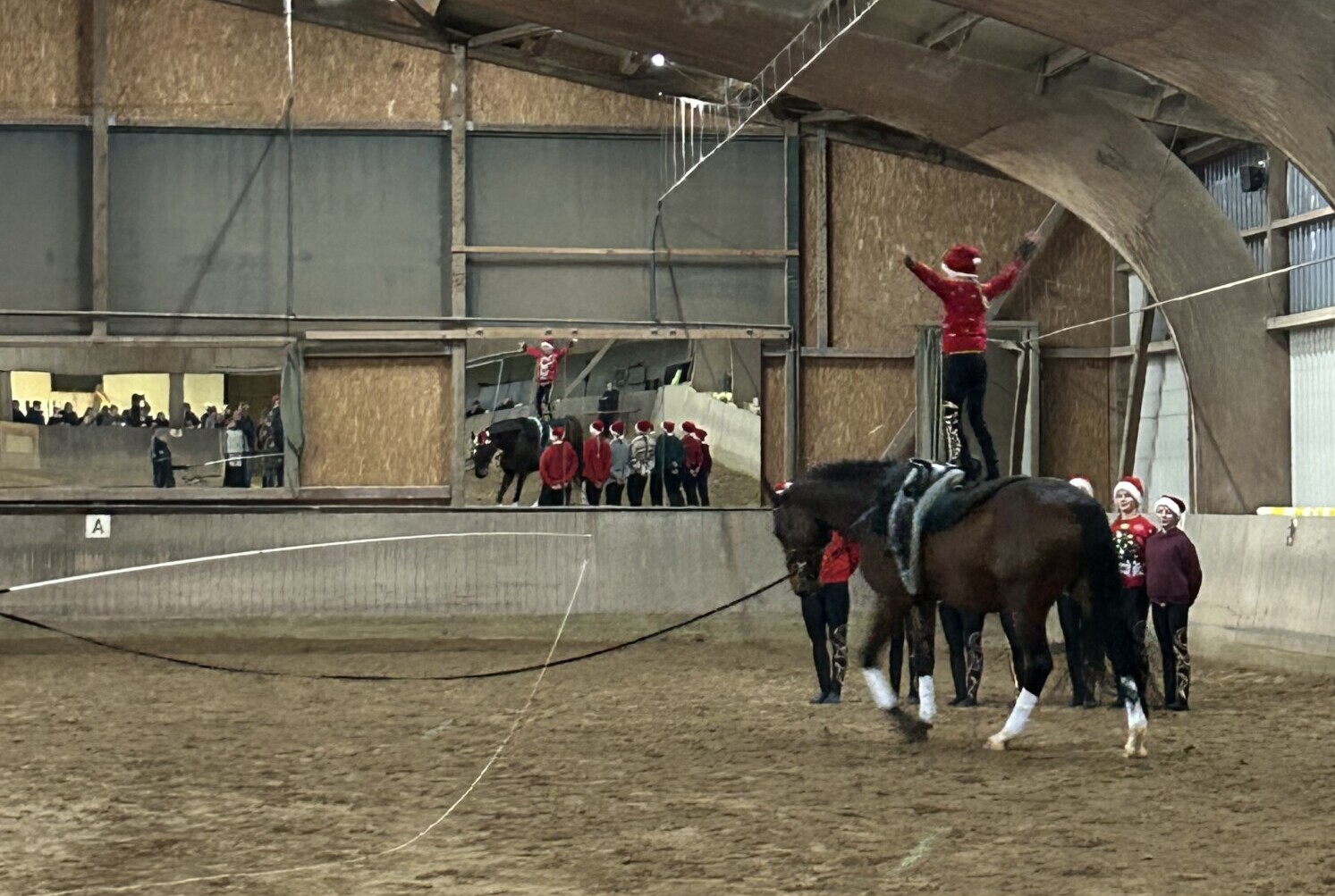 Bevor es anschließend in den gemütlichen Teil des Tages überging, sorgten unsere Voltigiererinnen und Voltigierer noch für ein echtes Highlight. In einer abwechslungsreichen Vorführung präsentierten sie Einzel- und Partnerübungen – im Schritt wie auch im Galopp – mit unterschiedlicher musikalischer Untermalung. Eine beeindruckende Darbietung, die bei den Zuschauerinnen und Zuschauern großen Anklang fand.