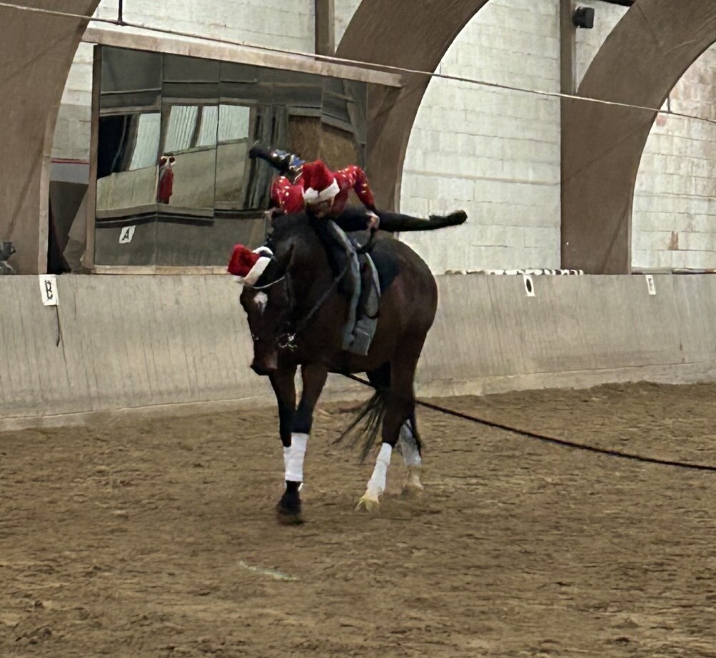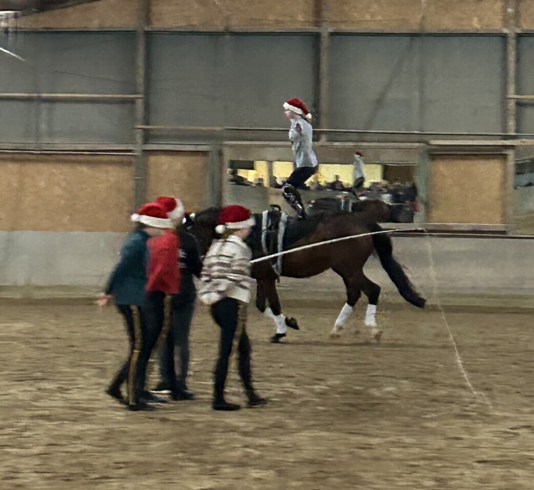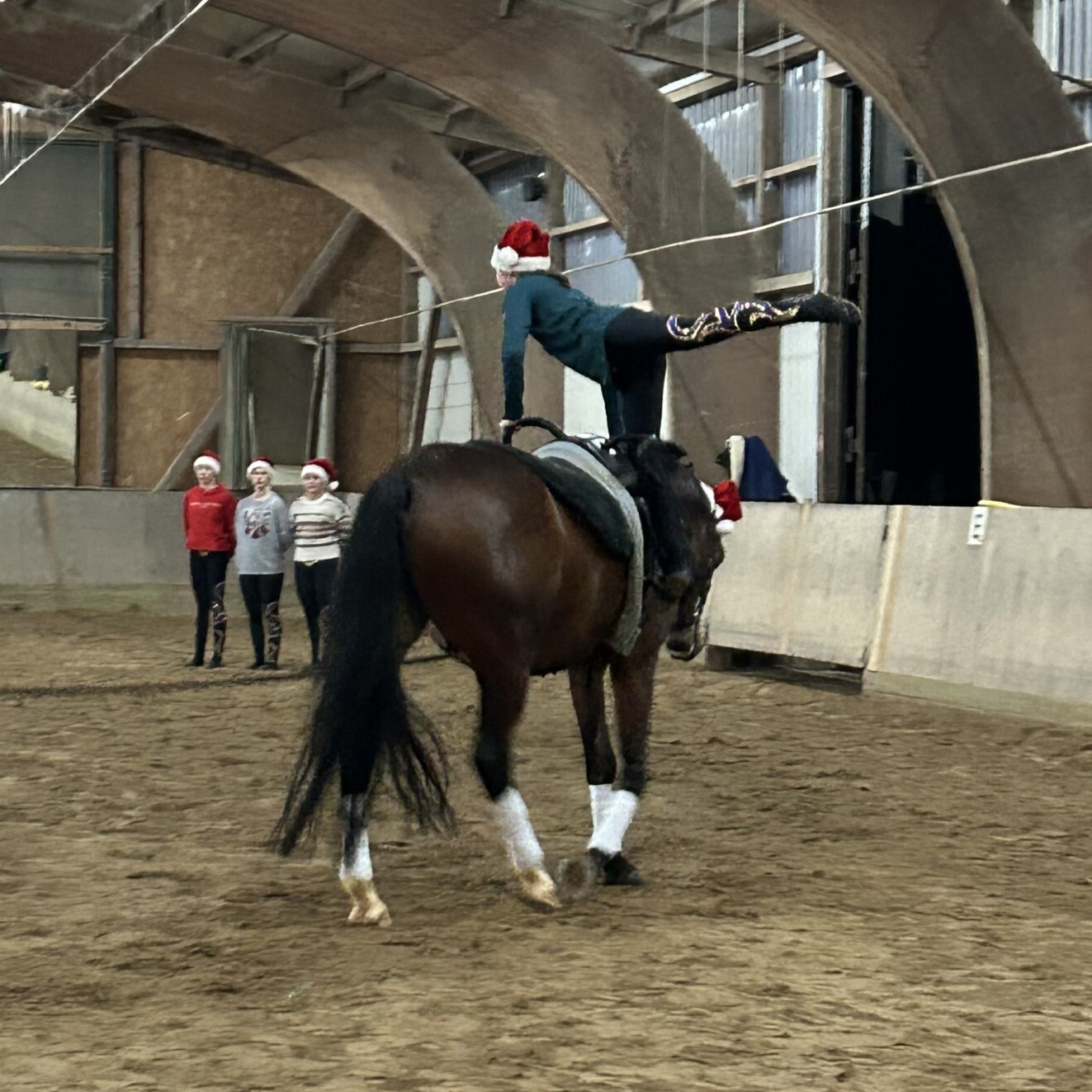 Bevor es anschließend in den gemütlichen Teil des Tages überging, sorgten unsere Voltigiererinnen und Voltigierer noch für ein echtes Highlight. In einer abwechslungsreichen Vorführung präsentierten sie Einzel- und Partnerübungen – im Schritt wie auch im Galopp – mit unterschiedlicher musikalischer Untermalung. Eine beeindruckende Darbietung, die bei den Zuschauerinnen und Zuschauern großen Anklang fand.